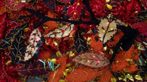 Sa nouvelle création est faite de broderies noires, rouges et or, ourlées de lumière. Et son esprit évoque la reine Catherine de Médicis, qui œuvra aux aménagements des lieux, témoins de la transition entre les styles gothiques rayonnant et flamboyant. Et du parc, où elle fit planter 3 000 ormes. Elle fait aussi écho à la figure mythologique féminine de la nymphe Daphné, qui se transforma en arbre pour échapper aux foudres d'Apollon.