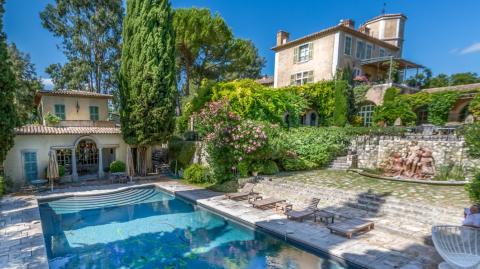 Located the perfect distance away from the glitz and bustle of La Croisette beach, discreet homes designed for easy living are nestled amongst lush greenery. This small château built in 1850 and surrounded by a historical, 3.5-hectare park is one such example.
