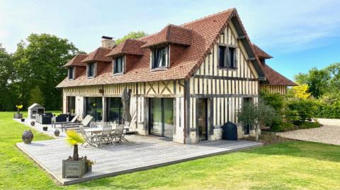 Near the Parc Naturel Régional des Boucles de la Seine Normande, this township with a preserved countryside environment is located 25 km from Deauville. On 2 hectares of a landscaped park, a special path leads to this charming property.