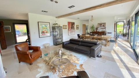 In a dominating position, this homestead offers 250 m² of living space, comprising 8 rooms, including 2 salons, 1 kitchen/dining room, 5 bedrooms, 4 bathrooms, 1 game room, 1 outbuilding, 1 tennis court and 1 natural pond. An ideal venue for an elegant family home.