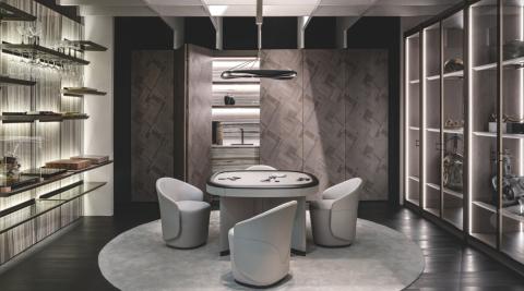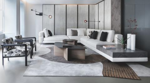 Dédié aux moments de détente, comme à l'espace de travail à domicile, le salon de Giorgetti joue la carte de l'environnement multifonctionnel.