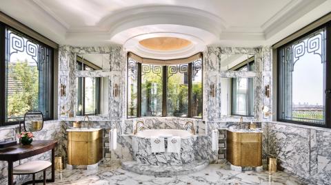 Membre du prestigieux groupe Dorchester Collection, l’hôtel Le Meurice peut enfin dévoiler cet été ses luxueux écrins. Des bataillons d'artisans, conduits de main de maître par le trio de designers Charles Jouffre, Margaux Lally et Luc Berger, les ont sublimés durant le dernier confinement. Chambres, suites et appartements offrent aux clients en quête d’une véritable expérience à la française un mélange maîtrisé entre modernité et style classique 18e siècle, avec des espaces lumineux très épurés.