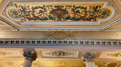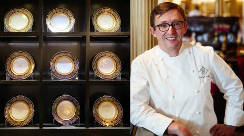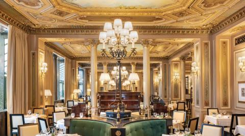 Les lieux se dégustent d'abord avec les yeux. Ils racontent d'ailleurs leur histoire au croisement des mondes de l'art, de la mode et de la politique dans un ouvrage publié aux éditions Flammarion ! Colonnes cannelées, fresques classées, plafonds à caissons ornés de ciels peints, meubles en bois sombre, fauteuils Louis XVI, banquettes en velours vert émeraude, moquette épaisse, luminaires, c'est la profusion des richesses. A plusieurs reprises, l'architecte d'intérieur Pierre-Yves Rochon en a sublimé le style Belle Époque, toujours dans un esprit luxuriant de blanc et d'or pour matcher avec l'atmosphère de l’InterContinental Paris le Grand, le 5 étoiles dans lequel il est situé.