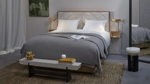 Noblesse des matières naturelles, précision des gestes experts, conseils personnalisés exclusifs, fabrication soucieuse des moindres détails, scénographie des ambiances dans la chambre, tout est empreint d’un doux parfum de voyage, de Milan à Florence. De l'éclairage intégré à la connectique, le lit s'offre désormais un détour par la grande tradition des tailleurs sur-mesure…