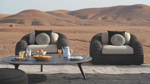 Référence belge en matière de design outdoor, Manutti lance une nouvelle collection de meubles d'été aux finitions de couleur noir cassé.