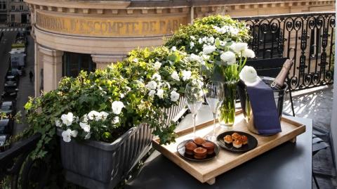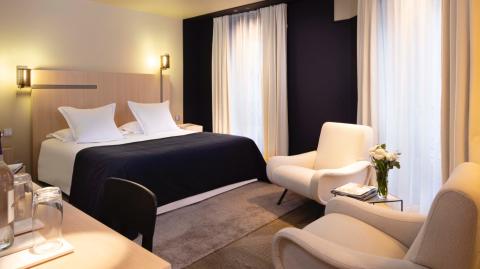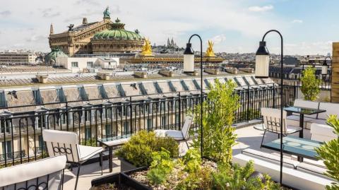 Ce joyau à la façade Art Nouveau de 1917 est situé à mi-chemin entre les places de la Madeleine et de l’Opéra. L'ancien grand magasin a longtemps fait les beaux jours des élégantes. Il est reconverti en 5 étoiles luxueux, sous la houlette du groupe américain Kimpton qui signe ici son premier hôtel à Paris. Parmi 149 chambres, dont 26 suites, certaines offrent la vue sur la coupole de l’Opéra. Au rooftop, le bar sert de délicieux tapas tandis que le restaurant Montecito, décoré par l’agence Humbert & Poyet, affiche un cadre végétalisé et une cuisine où fusionnent les saveurs du moment. Un passage au Spa s'impose pour les soins signés Codage et la piscine en mosaïques où l'on souhaiterait s'établir… Chambre double, à partir de 450€. kimptonsthonoreparis.com