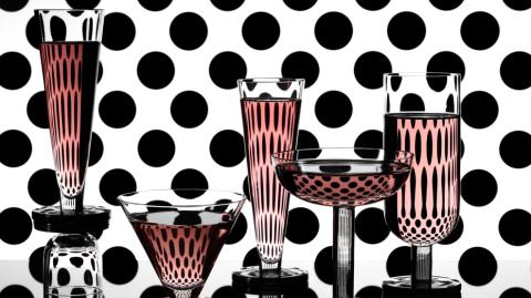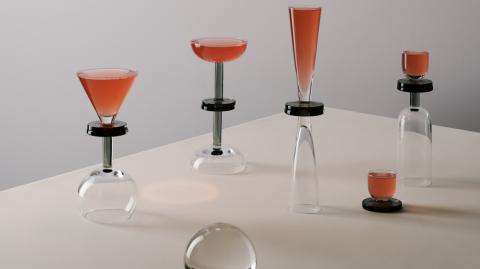 Quant à Puck, les pièces ont pris le parti d'une géométrie élémentaire. Leur base épaisse, qui rappelle les palets de jeu, est produite en verre soufflé à la bouche, avec un soupçon de couleur fumée. Flûte, verre à cocktail, à vin, à shot de spiritueux, ballon ou seau à glace, chaque accessoire est assez solide pour résister aux chocs des bars professionnels. Des services à s'offrir comme des œuvres d'art…