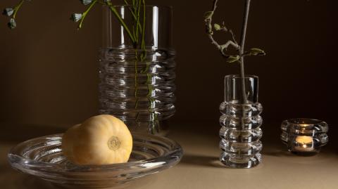 La série Press comprend des vases, des bols et des bougeoirs transparents, pensés pour réfracter aussitôt la lumière. Ils sont fabriqués avec de gros morceaux de verre, fondus à 1 200 degrés, puis pressés dans des moules en fer en plusieurs parties. Des manipulations précises et minutieuses qui ont bénéficié du savoir-faire d'artisans experts. Ces ustensiles n'ont pas de prise sur le temps. Et ils s'adaptent à tous les styles de la maison, de la cuisine à la salle à manger, en passant par les salons d'apparat.