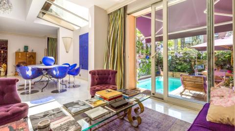 Celui-ci s'ouvre sur une somptueuse cour-jardin, et le fronton de sa maison blanche sertie de briques affiche une date de construction : 1872. On doit ce chef-d'œuvre à un trio d'architectes de renommée internationale, qui a restructuré ses espaces, tout en respectant les plans d'origine. A lui seul, le jardin fait 1 000 m², et les 2 étages desservis par un ascenseur offrent une surface habitable de 846 m² sur 10 pièces qui privilégient la décoration à la française avec des meubles de grandes signatures. Plutôt dépouillé, le salon favorise l'espace et la sobriété dans les 5 chambres. Salons, salle à manger, bibliothèque et suite de maître dévoilent le bon goût des résidents. Ces amateurs de prestations haut de gamme ont même aménagé le sous-sol en y implantant un longue piscine à débordement, un sauna, un hammam et une salle de fitness pour vivre la vie de palace à domicile. Des critères qui ne manqueront pas d'attirer votre attention !