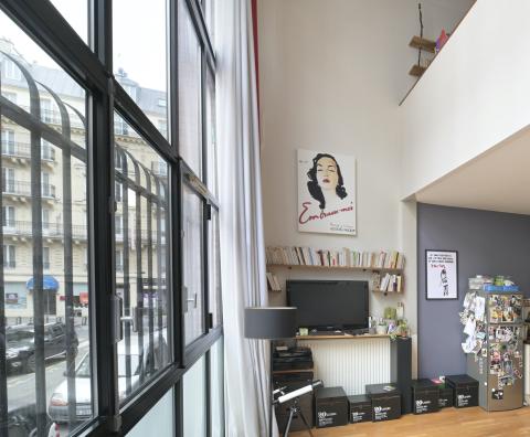 À l'exemple de ce 4 pièces de 98 m², encore dans son jus. Sa belle hauteur sous plafond de 6 mètres dévoile 3 chambres, 1 séjour avec cheminée, 1 coursive, 1 mezzanine et 2 caves sécurisées pour stocker vos toiles. Une fois personnalisé, vous allez l'adorer !