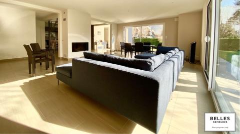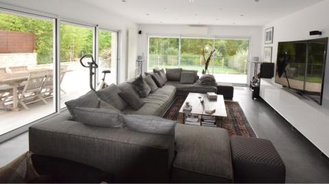 Contemporaine, elle repose sur 700 m² de jardin avec 2 terrasses exposées sud-ouest, 275 m² d'espace habitable, 8 pièces, 1 salon avec cheminée, 1 salle à manger, 1 cuisine indépendante, 6 chambres, dont 1 grande suite parentale, 3 salles de bains et 1 garage.