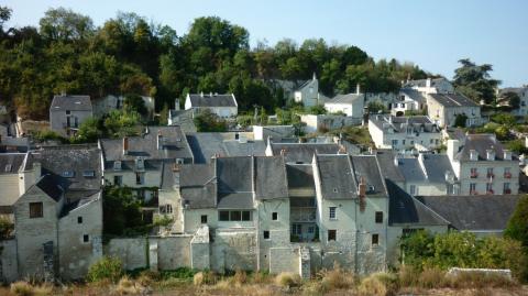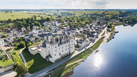 Le monument, dont les terrasses surplombent la Loire à 30 mètres de hauteur, est le fer de lance touristique d'une commune répartie en quatre quartiers. Autour d'un petit port commercial et de plaisance, l'habitat y reflète le matériau de construction principal de la région : le tuffeau, une craie sableuse qui illumine les façades blanches des maisons, dont certaines sont de type troglodytes, creusées dans les rochers et les anciennes carrières. Une originalité qui façonne les paysages locaux, tout en encourageant ceux qui veulent fuir la capitale à acheter un château en Maine-et-Loire.