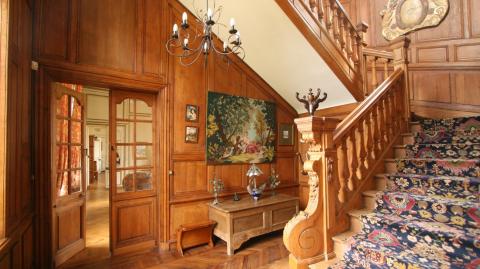 A 20 kilomètres de la capitale normande, cette propriété commercialisée par le Cabinet Lenail, et récemment restaurée, est située à 150 km à l'ouest de Paris. Jouissant d'une implantation privilégiée, ce château à vendre en Basse Normandie est entouré d'un parc de 37 hectares, planté d'arbres centenaires, d'un verger et d'une petite pièce d'eau. Une chapelle jouxte cette belle demeure, le bâtiment des dépendances abrite des garages et des remises, à côté d'une maison de gardien à rénover.