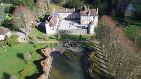 Parmi les plus beaux châteaux à vendre en France, ceux de Normandie sont situés près des plages de Deauville. Ce Monument Historique, desservi par l'autoroute et le train, est situé à seulement 150 kilomètres de la capitale. Dans l'environnement de campagne boisée des boucles de la Seine, l'ancienne seigneurie, dont certaines parties datent du 15e siècle, puis agrandies au 18e et 19e siècle, offre un cachet architectural à la silhouette attractive. Son domaine s'étend sur 42 hectares, clos pour la plupart, avec des prairies permettant d'avoir des chevaux, un jardin à la française et un potager.