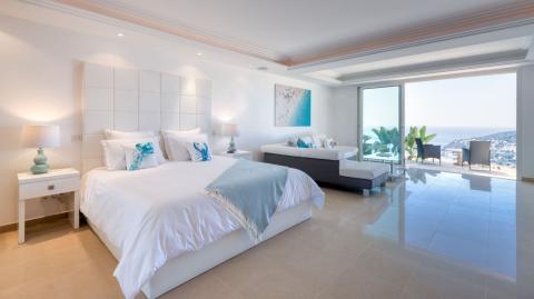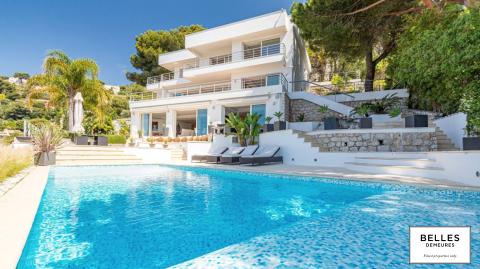 Cette villa contemporaine est située dans un domaine privé et sécurisé. Érigée en position dominante, elle est entourée d'un jardin paysager de 1450 m² aux terrasses ombragées. L'espace de vie compte 470 m², pour 9 pièces, 1 salon de réception, 1 vaste séjour prolongé par une salle à manger, 2 cuisines, 5 chambres 5 salles de bains et 1 piscine/jacuzzi en extérieur. En admirant la vue, on se sent très vite privilégié…