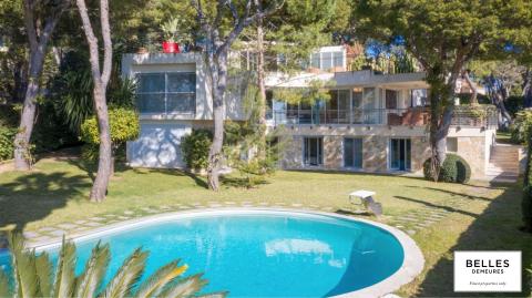 Construite sur un emplacement joliment arboré de 1 844 m², elle accueille une piscine de forme ovale et ses 450 m² habitables surplombent une terrasse avec vue mer. Ses 3 étages comptent 7 pièces, 1 salle à manger, 1 cuisine équipée, 2 salons, 1 home cinéma, 4 chambres, dont 1 suite de maître, 4 salles de bains, 1 bureau et 1 sauna. Assurément la meilleure exposition du Cap-Ferrat !