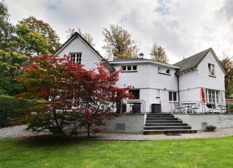 Posée sur un terrain de 1 000 m², elle est située dans le quartier dit des Quatre-Bras, à proximité du golf de Ravenstein, des écoles internationales et de l'aéroport. Ce qui la rend intéressante, c'est sa conception, faite de deux bâtiments identiques séparés, mais réunis par une grande pièce.