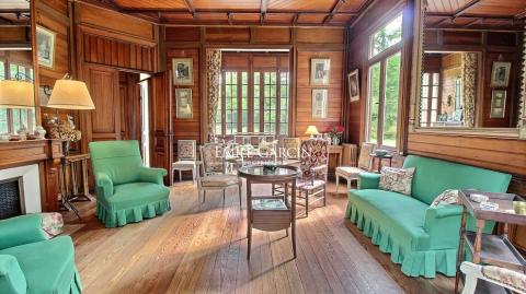 Après les émotions intenses de la fête, il vous sera agréable de retrouver ce chalet suédois à l'architecture singulière. Autrefois au pied de la Tour Eiffel, lors de l'exposition universel de 1889, il trône sur un terrain de 4 328 m² pour 200 m² de surface habitable. Il compte 10 pièces, 1 entrée, 1 salle de réception avec cheminée ouvert sur une terrasse, 1 salle à manger, 6 chambres, 5 salles de bains et 1 dépendance avec 2 chambres et 1 garage. Le coup de cœur parfait pour s'offrir une maison de famille unique…