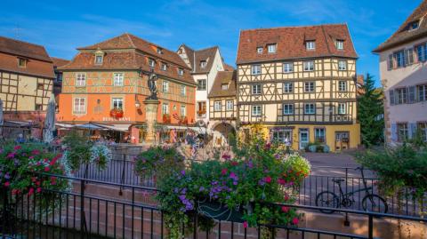 En toutes saisons, Colmar se visite au fil de l’eau, le long des canaux fleuris de la rivière Lauch où voguent les barques pittoresques, à fond plat, des maraîchers qui glissent sur une eau calme et paisible. Tout autour, le paysage préservé des maisons à colombages, aux couleurs vives, est le point de départ de balades qui font le bonheur des touristes. Une carte postale grandeur nature. À proximité de l’Allemagne et de la Suisse, le centre historique de Colmar vit dans un autre monde, celui des contes de fées et des légendes qui peuplent les rêves des enfants.