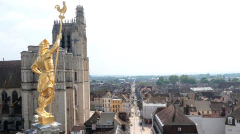 Objet de tous les regards, puisque sa tour surplombe les toits de la ville, cet édifice qui a fait l'admiration des écrivains Gustave Flaubert et Victor Hugo regorge de secrets. Et recèle un trésor renfermant émaux, ivoires, pièces d’orfèvrerie, ornements et vêtements liturgiques. Il est même conseillé aux visiteurs de se munir de jumelles pour profiter pleinement de tous les détails des vitraux du Moyen Âge, véritables bandes dessinées d’autrefois. Une fois franchi son immense parvis, il est l'épicentre d'un ensemble qui abrite les anciens palais synodal et archiépiscopal. Et chaque été, c'est le centre d’un spectacle son et lumières de dernière génération qui sublime ses façades et ses vitraux.