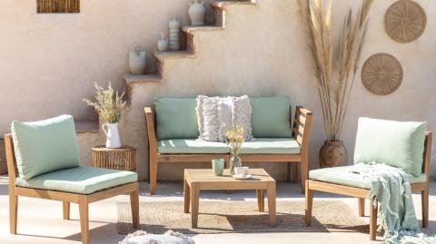 Sets de jardin, coussins moelleux, chaises longues dont les dossiers s'inclinent à volonté pour profiter des bienfaits du soleil ou de la sieste, sofa 3 places régulables en bois d'acacia, salons complets et structurés pour vos écrins de verdure, c'est l'état de grâce estivale. Les couleurs claires, les fibres naturelles et le bois sont même de sortie pour que la décoration prenne des couleurs.